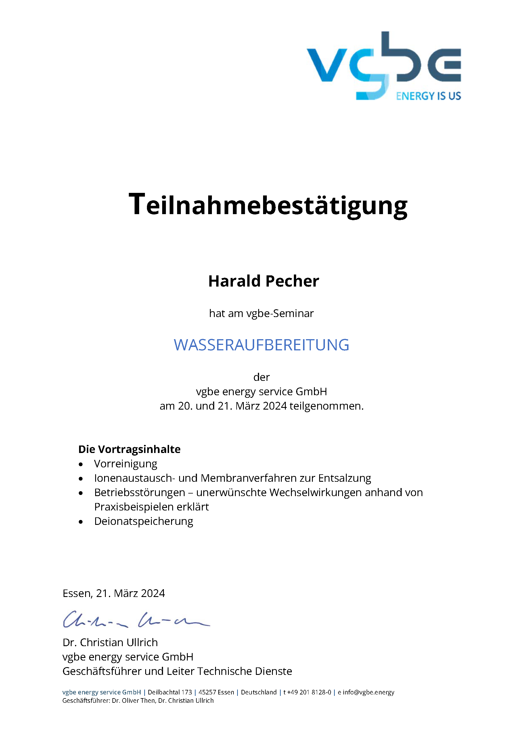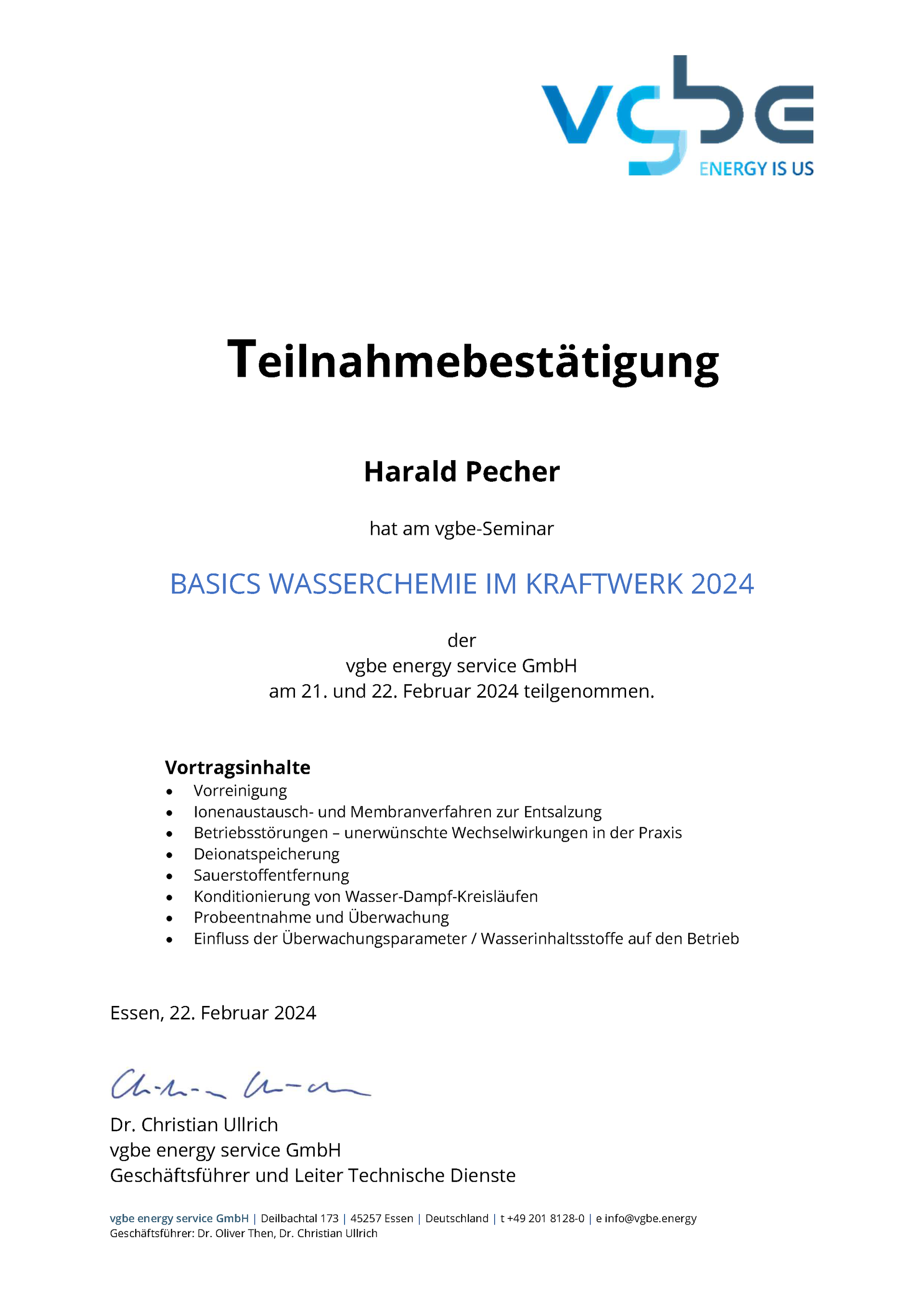 | March 2024 | water plant treatment | vgbe energy service GmbH |